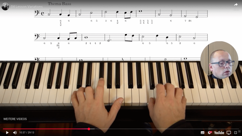 Self-paced video course to develop your keyboard improvisation skills by mastering 18th century variation techniques over given themes (bass or soprano).